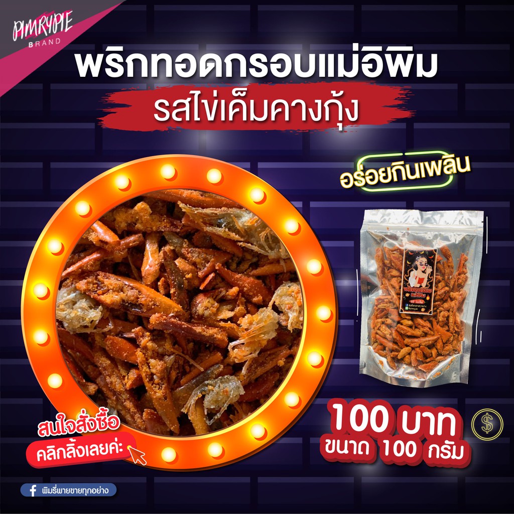 💪อร่อยเพลินได้สุขภาพด้วย 🌞 🌶พริกกรอบเราใส่ใจ รีดน้ำมันออกจากพริกให้มากที่สุด พริกเราจึงแห้งมากๆ ทานแล้วสบายใจ. ถูกใจ 9,363 คน · 3 คนกำลังพูดถึงสิ่งนี้. Otherwise, you won't know a pack for 370 baht. 🌶 🔥 พริกทอดแม่อีพิม ของ พิมรี่พาย 🌶 🔥. Join facebook to connect with พิมมี่พาย ตัวเเทนหัวหิน พริกทอดพิมรี่พาย and others you may know.